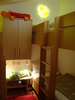 ein Schlafzimmer ausgestattet mit zwei Stockbetten und Kabel-HD-Fernseher, DVD-Recorder und zusätzlich einen Fön.